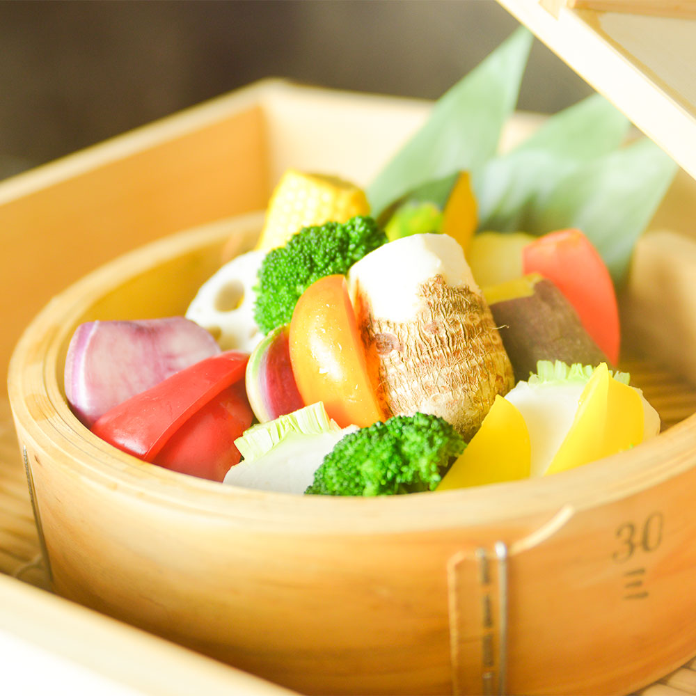 野菜をコンセプトに、契約農家からの野菜を使用した「蒸し野菜・生野菜サラダバー」を名物にしたブッフェスタイルのレストランです。